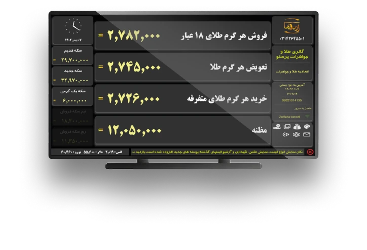دستگاه اعلام نرخ تلویزیونی زربها یکی از ابزارهای مدرن و حرفهای در حوزه نمایش لحظهای قیمتهاست که با هدف بهروزرسانی سریع و دقیق نرخها در