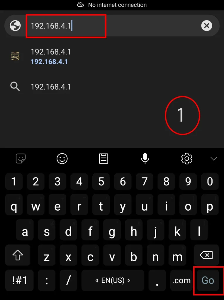 اکنون گوگل کروم گوشی خود را باز کرده و در داخل آن آدرس 192.168.4.1 را (به انگلیسی) وارد کنید.