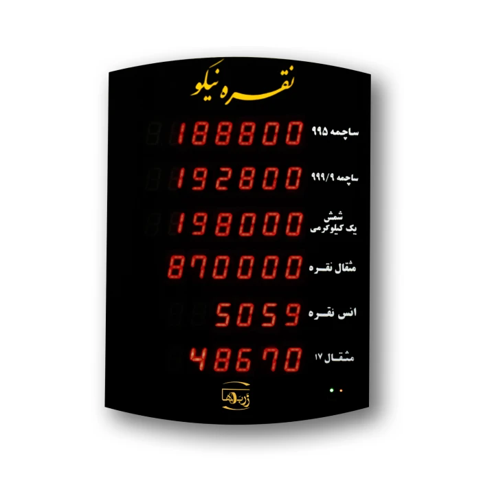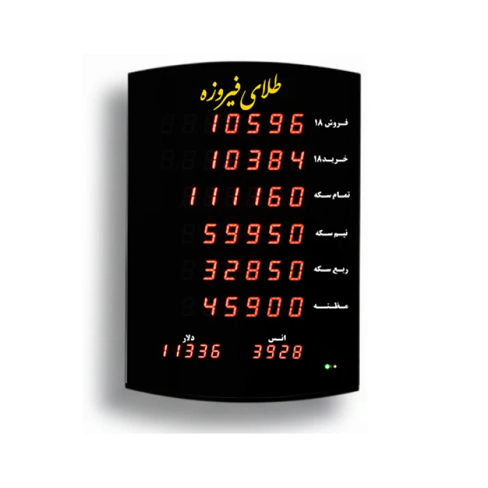 مناسب نمایش نرخ با ابعاد ۳۴×۳۴ سانتیمتر؛ بدون نیاز به تلویزیون، با زاویه دید ۱۷۰ درجه، دریافت نرخ لحظهای از ۵ منبع وایفای و قابلیت خاموش و روشنشدن خودکار.